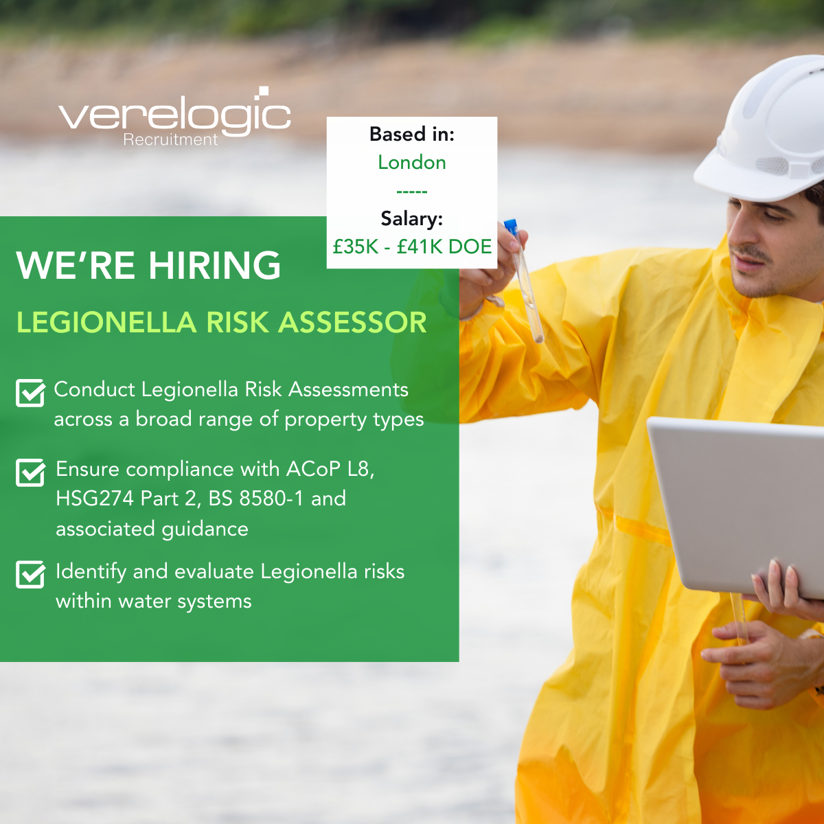 Desirable: Recognised Legionella Risk Assessor qualification (e.g. City & Guilds, BOHS, Water Management Society) Applications from experienced assessors without formal certification are welcomed, with support available to achieve relevant qualifications. A DBS check is required for this position.