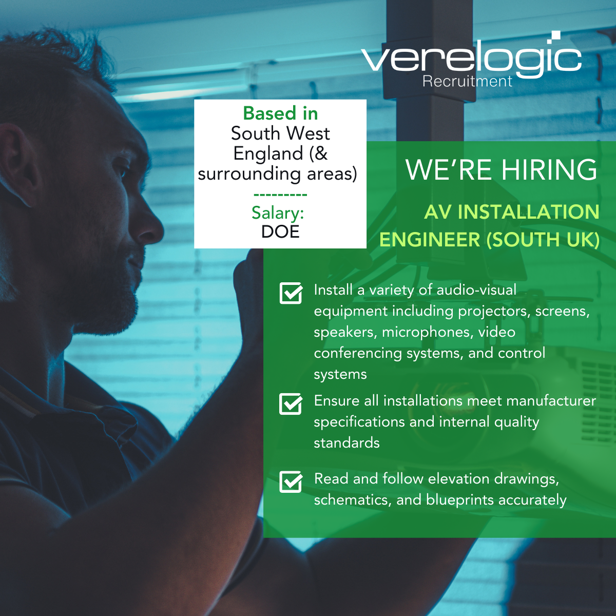 Skills and Experience Proven experience in AV installations Ability to interpret and work from technical drawings and schematics Basic fault-finding and problem-solving skills Strong communication and interpersonal skills Ability to work independently and as part of a team Full UK driving licence and willingness to travel extensively across the South of England