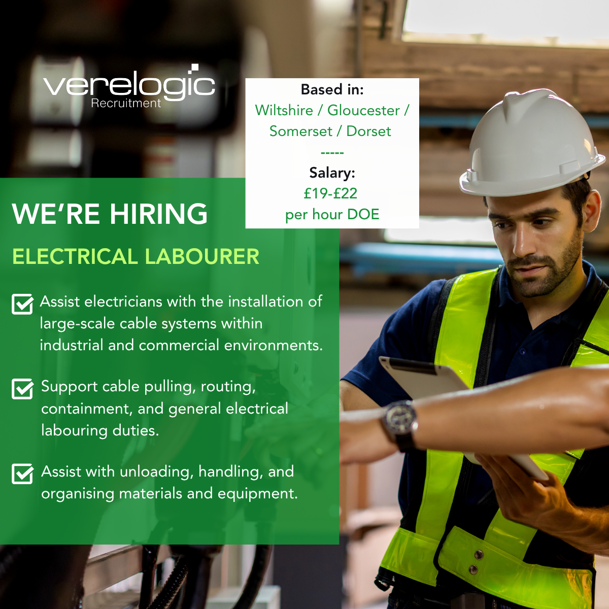 Electrical Labourer Employment Type: Self-Employed, Full Time Rate: £19-£22 per hour (DOE) | 50+ hours per week available | Paid travel | Weekly invoicing (CIS scheme) Reports To: Electrical Supervisor & Project Leads