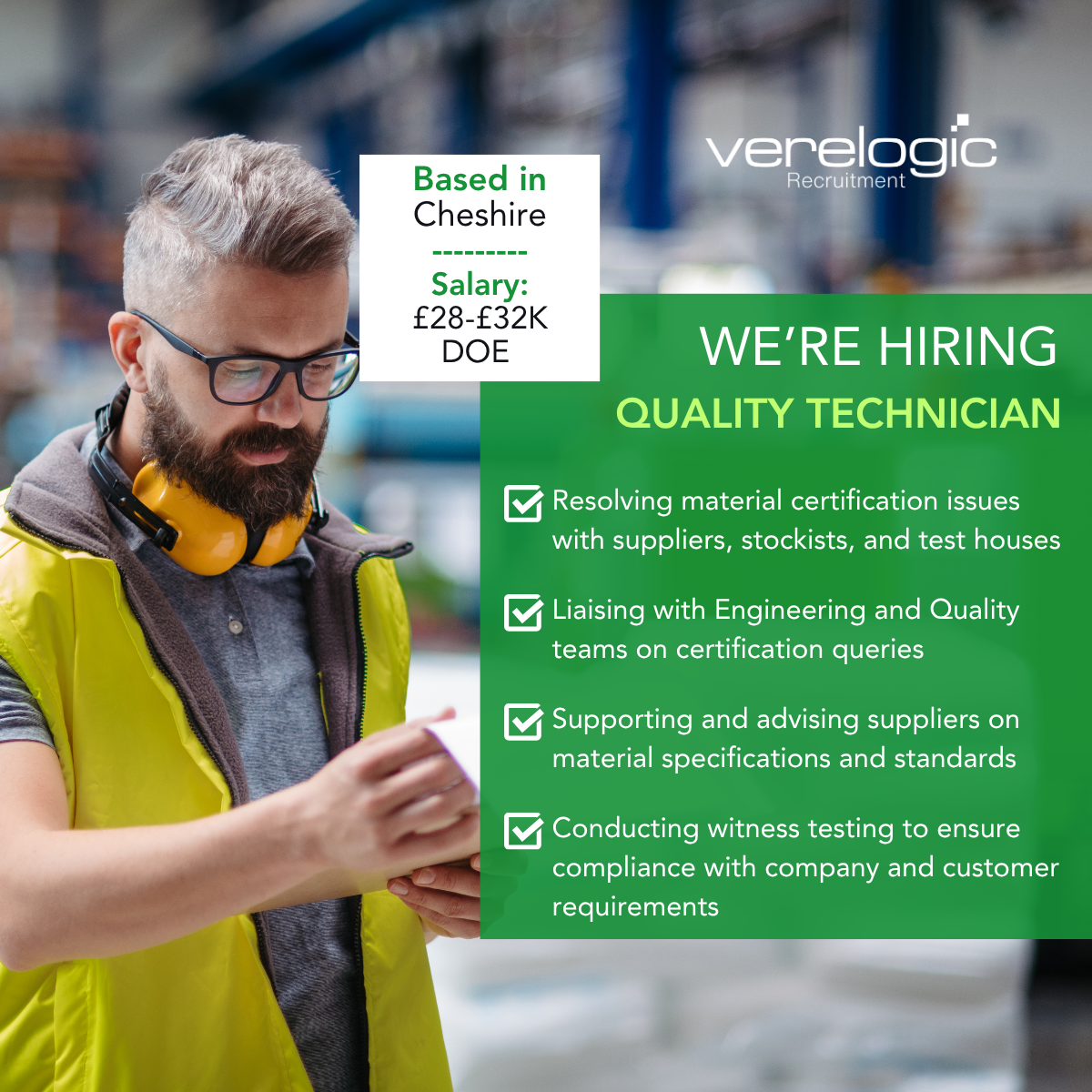 Role: Quality Technician Location: Cheshire Working Hours: Monday-Friday, 8:30am-5:00pm (40 hours per week, office-based) We are currently recruiting for an experienced Quality Technician to join a well-established, growing precision engineering manufacturer operating within highly regulated, safety-critical sectors.